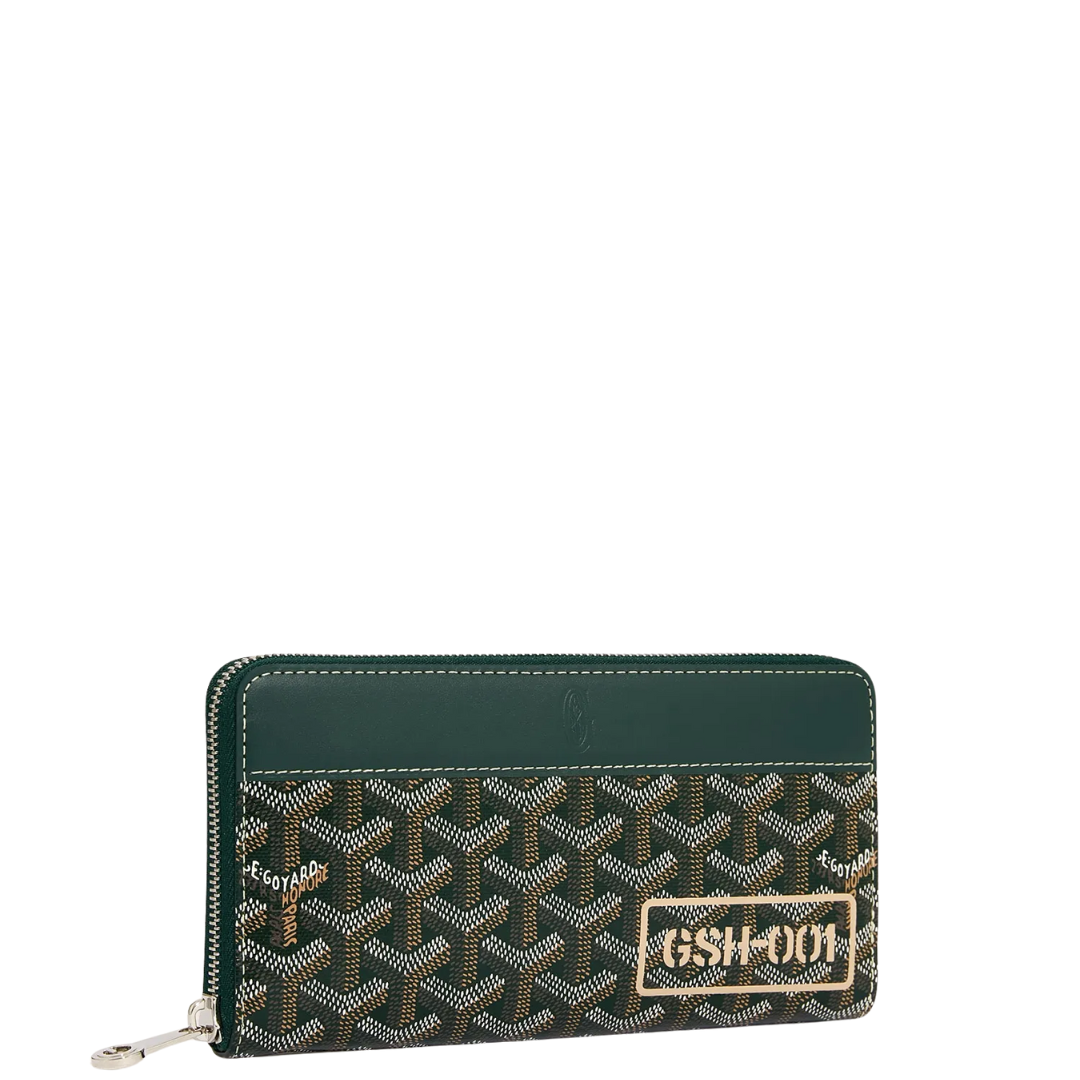 For the final chapter of our "Le Jardin Goyard" 2025 theme, the Matignon GM wallet is dressed up in an exclusive Dark Green Goyardine canvas, inspired by the distinctive colour of deep tree foliage. Each piece is made unique thanks to a specific marquage and personalised according to the boutique it belongs. Compact and fully zipped model, the Matignon GM wallet features multiple interior compartments.