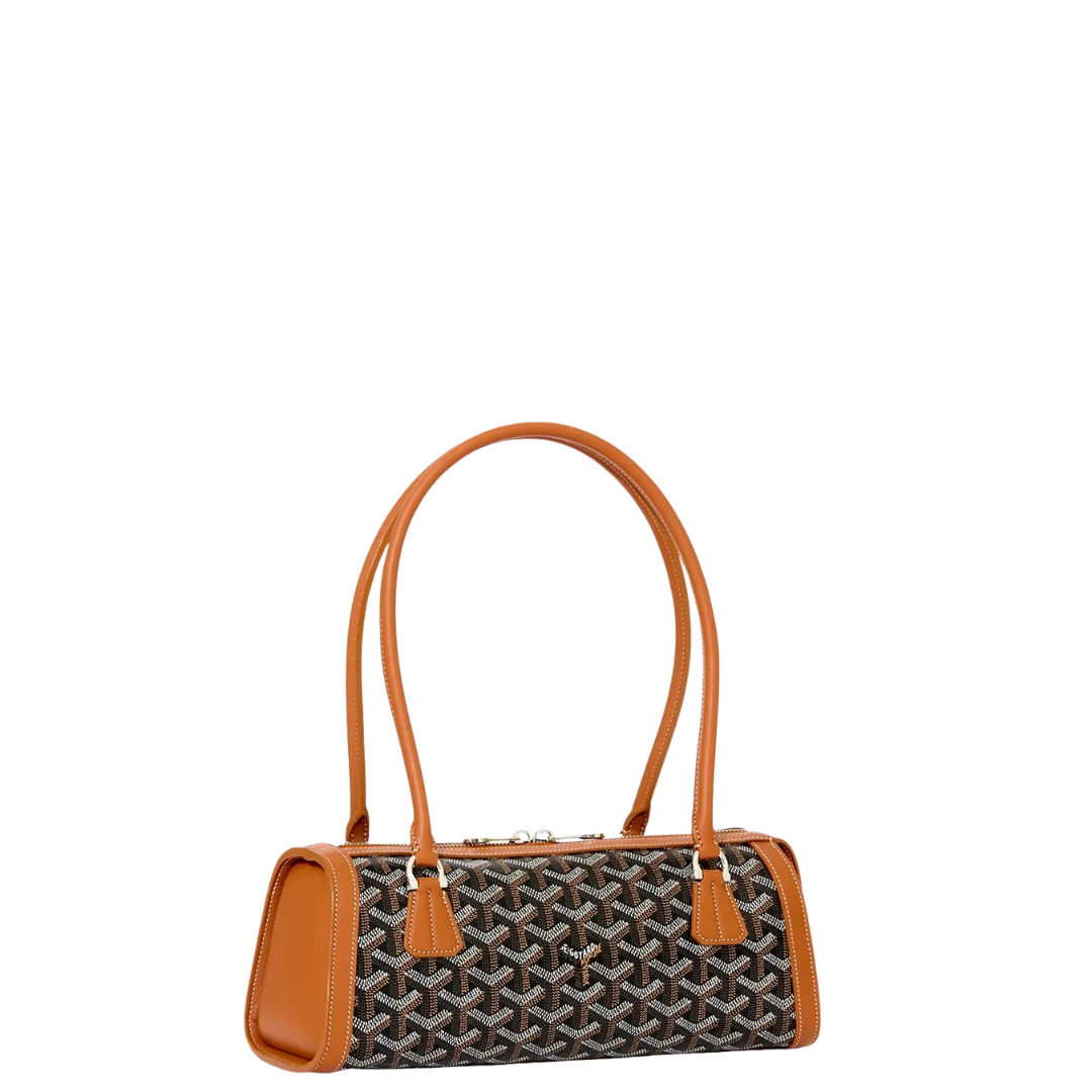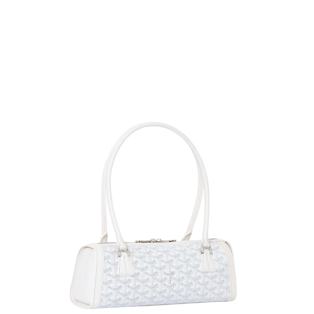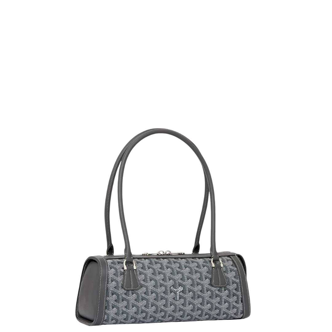 The Bonbonnière bag is at once understated and bold. Thanks to its striking "baguette" shape and elongated leather handles, it seamlessly transitions from handbag to shoulder bag, and can be styled either horizontally or vertically.